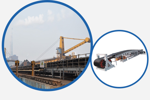 输送系统配套设备有托辊、缓冲托辊、调心托辊、滚筒(排渣滚筒、TDY油冷式电动滚筒、改向滚筒、外装式电动滚筒、铸胶传动滚筒等)